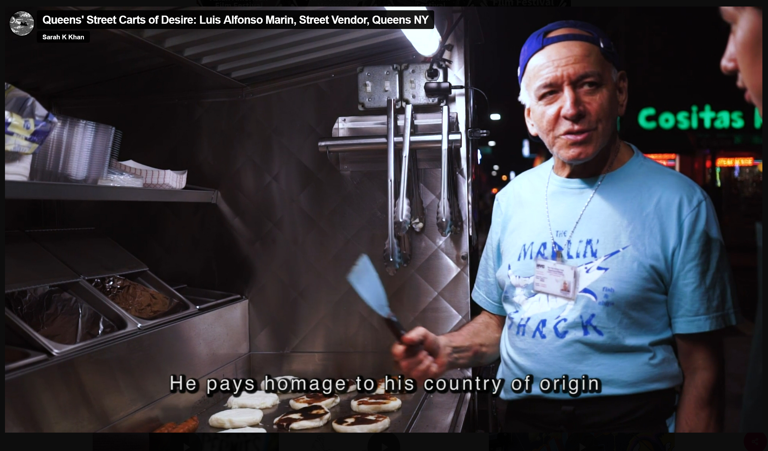 How it’s a “little miracle” to have a studio (a former chick coop on a farm in the 5-college area of Mass.) after so many years working in kitchens and other spaces not dedicated to her work and where she can really spread out; her short films about the immigrant experience in New York via food trucks (particularly her Queens Migrant Kitchens series), and how she was originally motivated to work in this area in 2015 as a way to follow up on the fall-out from 9/11 among the immigrant community; the challenges she had getting street vendors and other food makers in being filmed, because they were afraid of being surveilled; the films’ impact on the street vendor community, including one woman who was able to grow from a street vendor stall to a brick-and-mortar restaurant (and keep the food stall active); her collaboration on ‘Speak Sing Shout: We, Too, Sing America’ with the animator Simon Rouby; her film and photography work in Old Dehli, one of the many world crossroads she’s covered; how making things for herself, first and foremost, is a practical way of making work (this may or may not be connected to her not being trained in a BFA/MFA kind of way; she has advanced degrees in food studies and has a background in integrative medicine); and how the core of her work is talking about the migration of people, plants and ideas (often women, often domestic spaces).